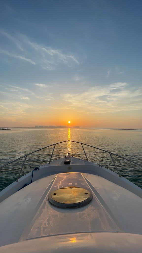 Finish your day in style and end it in the beautiful Bay of the Amwaj Island, sailing through the golden sunset water.